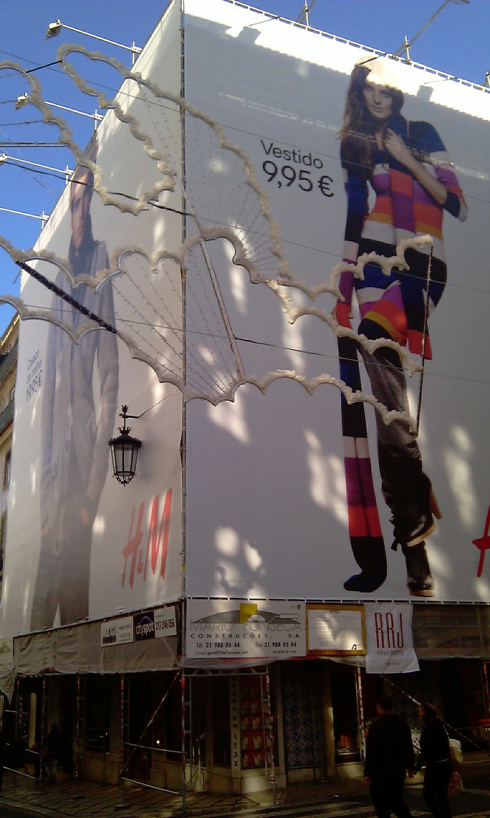 As fachadas do prédio da velha Livraria Bertrand, na Rua Garrett, em Lisboa, estão em obras, "encadernadas" com publicidade a outros negócios.